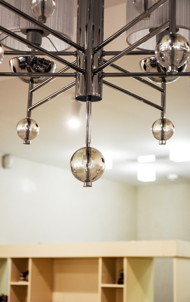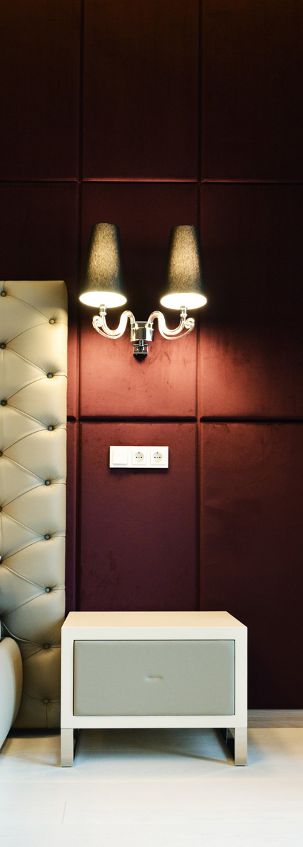 сочетания создают аккуратное и комфортное пространство для молодой семьи. Велюр и хром, глянец и