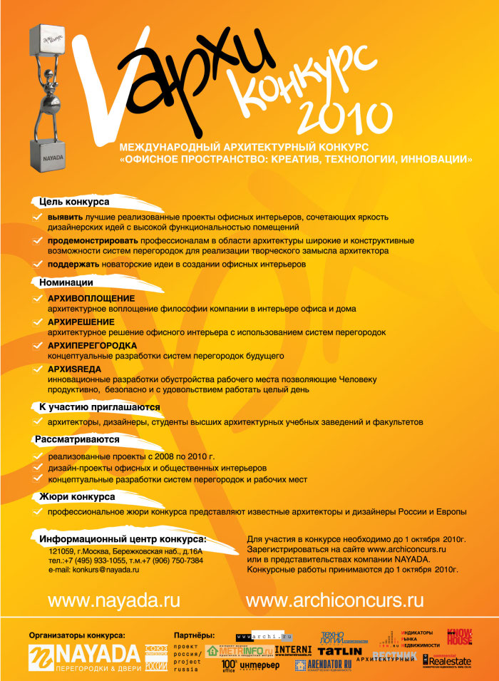 18 ноября 2010 г. в Центре Современного Искусства М’АРС состоялась торжественная церемония награждения победителей юбилейного V Международного архитектурного конкурса «Офисное пространство: креатив, технологии, инновации».